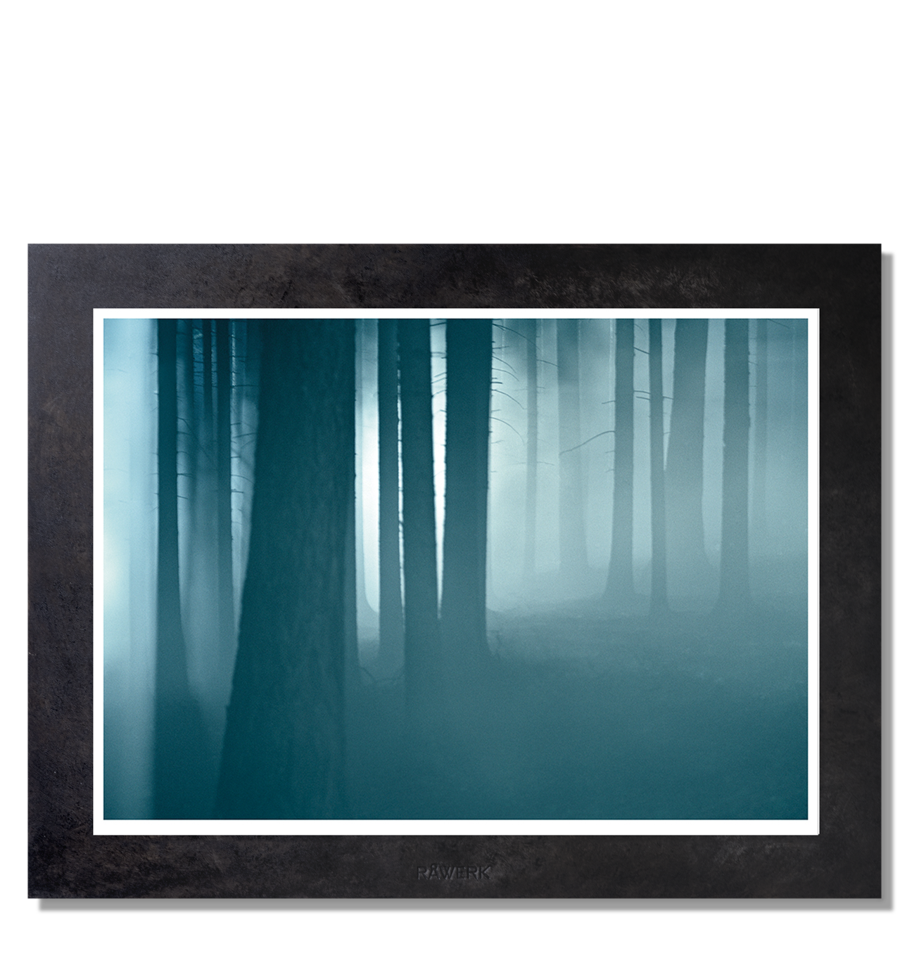 IDNo. Misty ForestDessa foton är tryckta på Hahnemühle, Photo Rag 308g och monterade på en svart oxiderad järnplatta. Före oxidationen har varje platta lämnats utomhus i flera månader för att skapa en individuell och rå patina. Den svarta järn passe-partout kommer därför att ha ett unikt mönster och nyans på varje tavla. Två 45 ° MDF-skivor gör väggmonteringen enkel och horisontell. Detta gör också att stålplattan svävar 2 cm från väggen. Signerad och redo att hitta en plats på din vägg. 25 signerade exemplar.