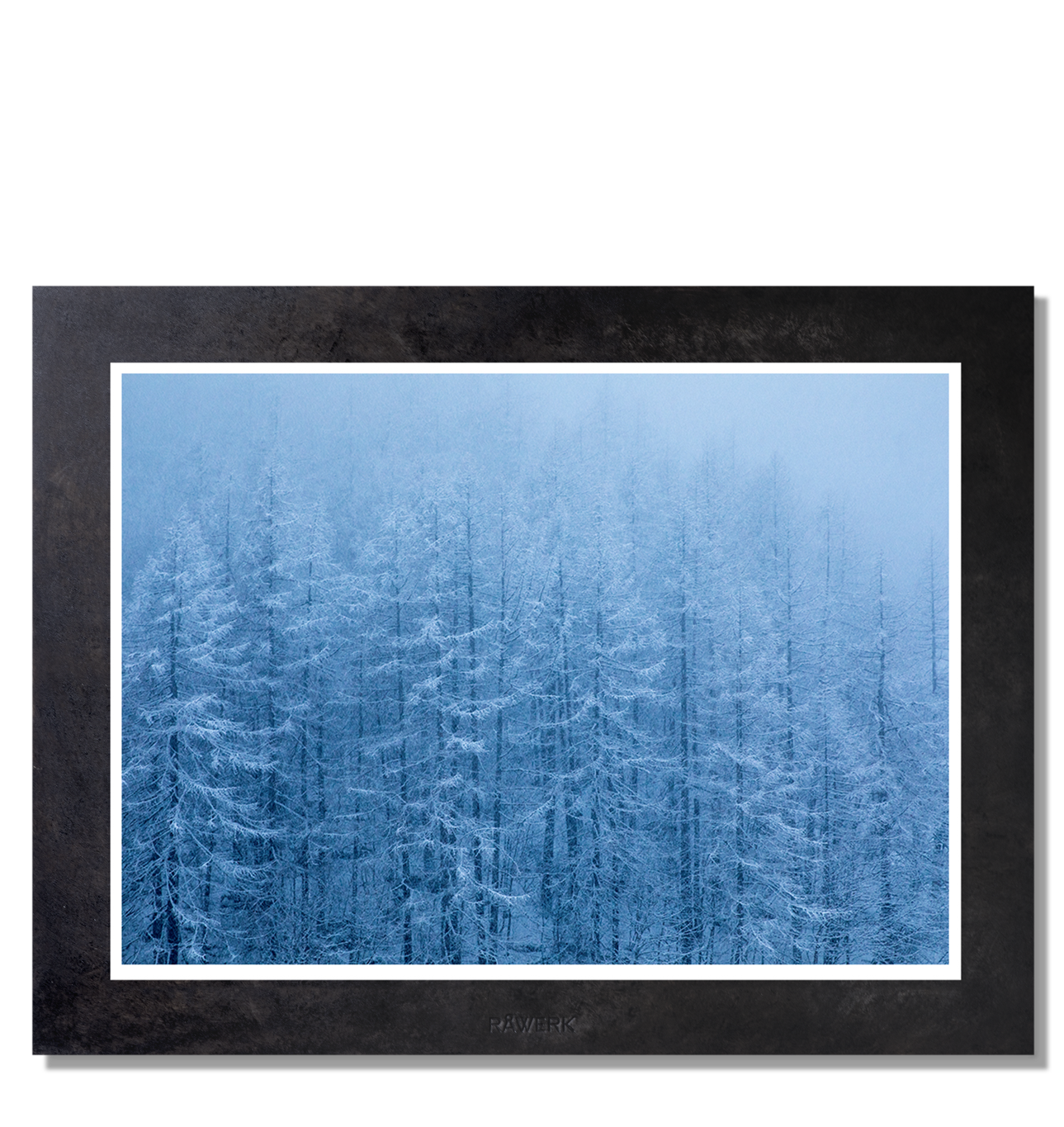 Dessa foton är tryckta på Hahnemühle, Photo Rag 308g och monterade på en svart oxiderad järnplatta. Före oxidationen har varje platta lämnats utomhus i flera månader för att skapa en individuell och rå patina. Den svarta järn passe-partout kommer därför att ha ett unikt mönster och nyans på varje tavla. Två 45 ° MDF-skivor gör väggmonteringen enkel och horisontell. Detta gör också att stålplattan svävar 2 cm från väggen. Signerad och redo att hitta en plats på din vägg. 25 signerade exemplar.